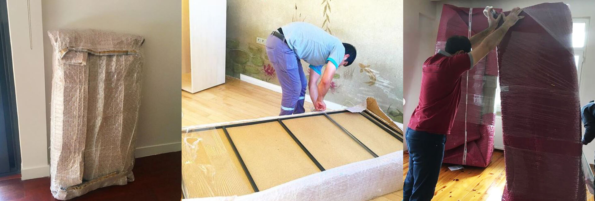 Yeni nesil evden eve taşımacılık hizmetimiz tam korumalı ambalajlar ile eşyaları sarmak ve üzerine streç film ile izolasyon yapmak...